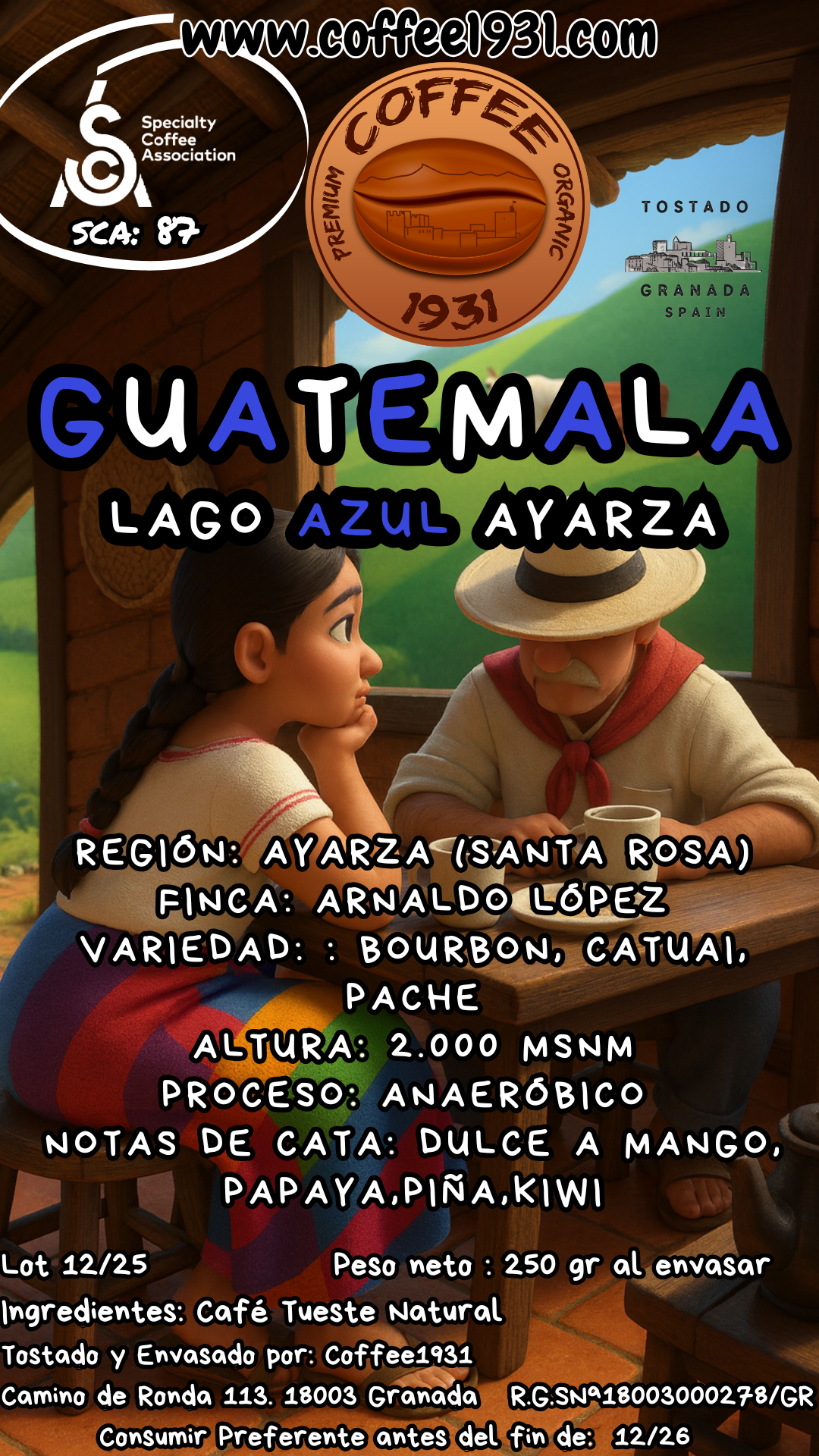 En Coffee1931 buscamos cafés que cuenten historias, que conecten origen y emoción. Este lote nos habla de agua, de altura, de paciencia y de visión. Es un café que no solo se bebe, se contempla. Y que, como Granada, celebra la luz, el color y la diversidad.